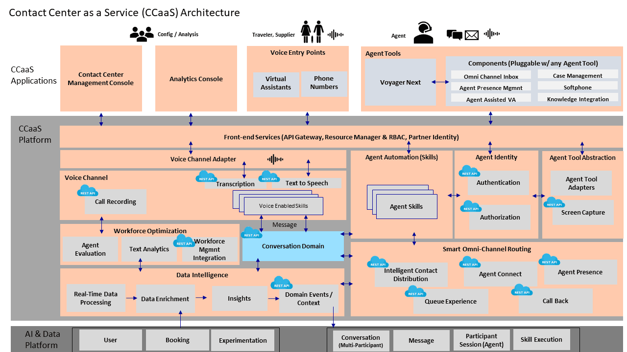The Contact Center as a Service (CCaaS) Conversations Platform describes a set of capabilities that can be leveraged by any application to intelligently connect any agent (human or virtual) to any traveler or supplier across any channel.